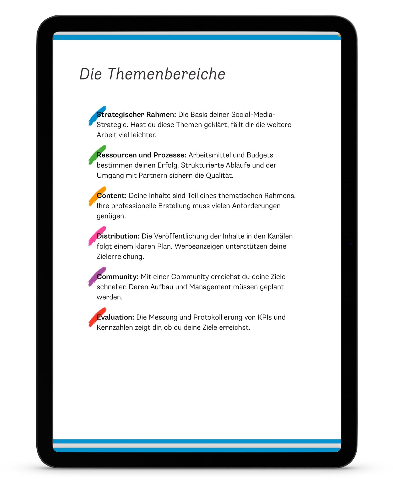 Damit hast du alle wichtigen Bereiche deiner Social-Media-Strategie im Blick.
